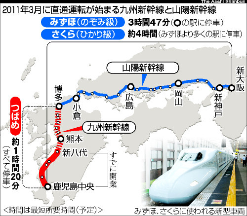 大阪―鹿児島直通新幹線 3時間47分